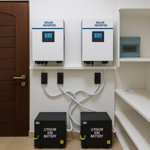 A grid-connected solar power system works seamlessly with the existing utility grid and will try to meet the load demand. The addition of a battery-backup allows the system to maintain a balance of production and demand. The solar systems production depends on the availability of sunlight.